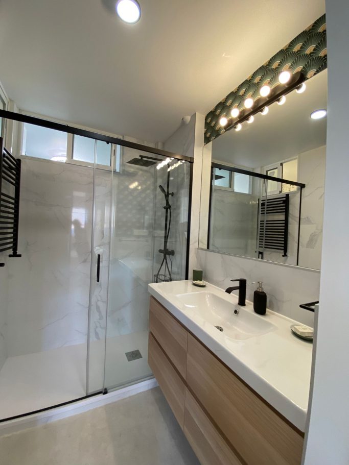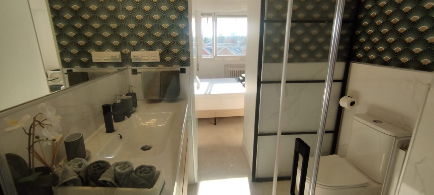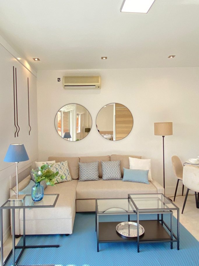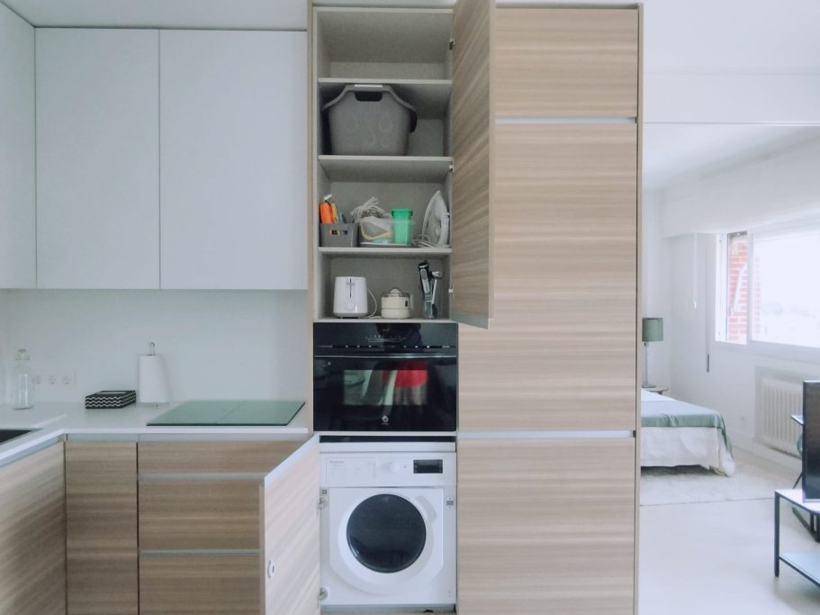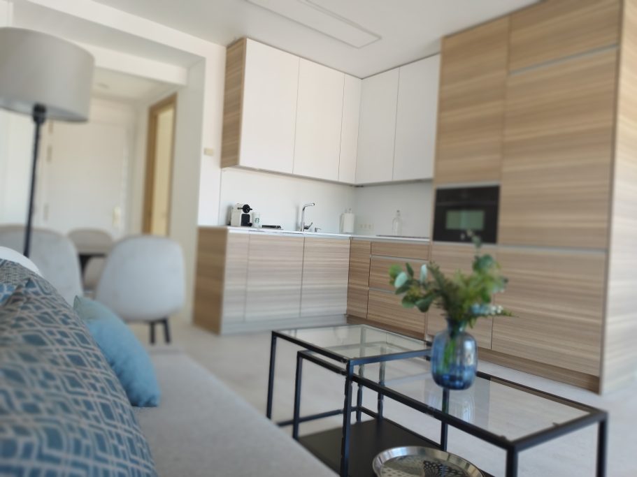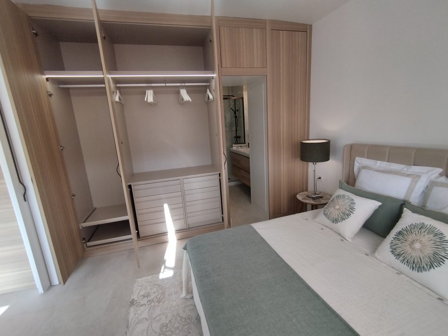 Demolimos el piso entero y lo redistribuimos a dos dormitorios con dos baños ensuite y tres armarios de 2m. y salón con cocina integrada.